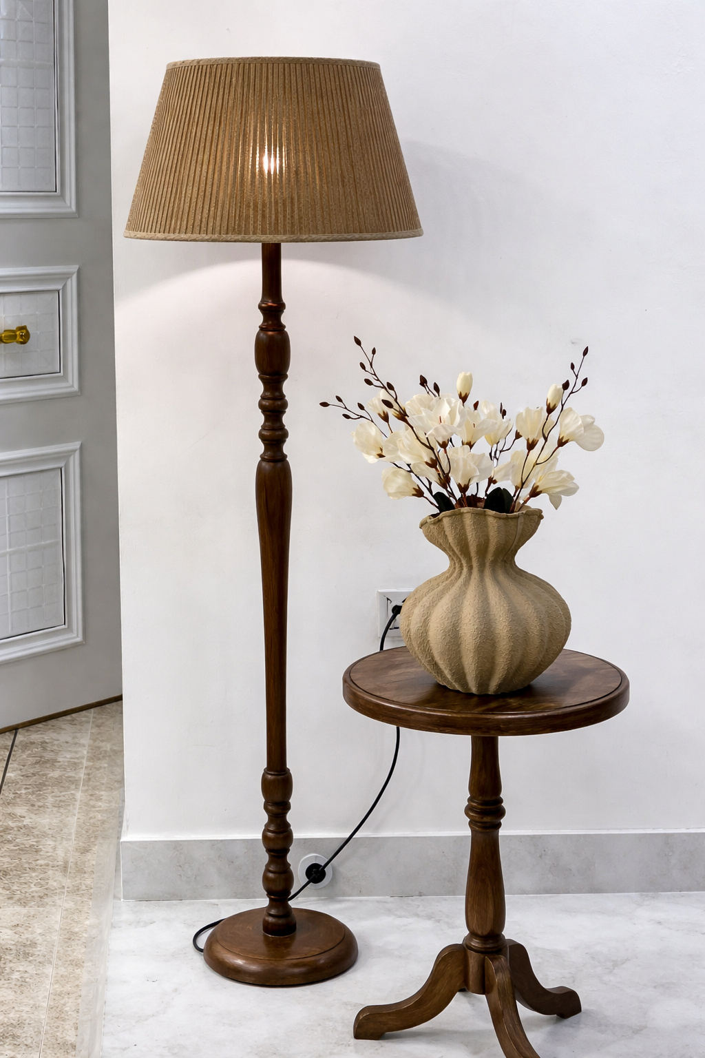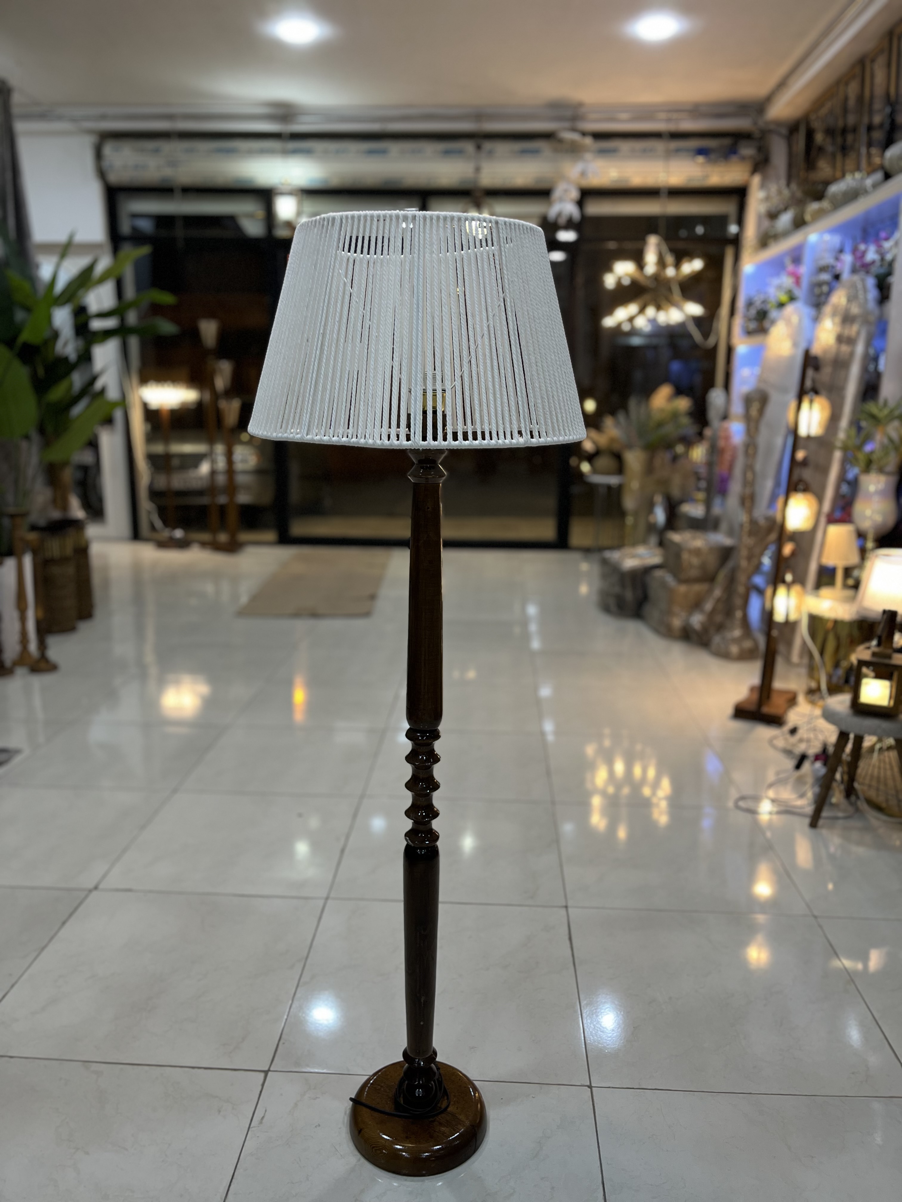 آباژور تک پایه چوبی خراطی با شید کنفی (برای انتخاب رنگ پایه و شید تماس بگیرید) کپی