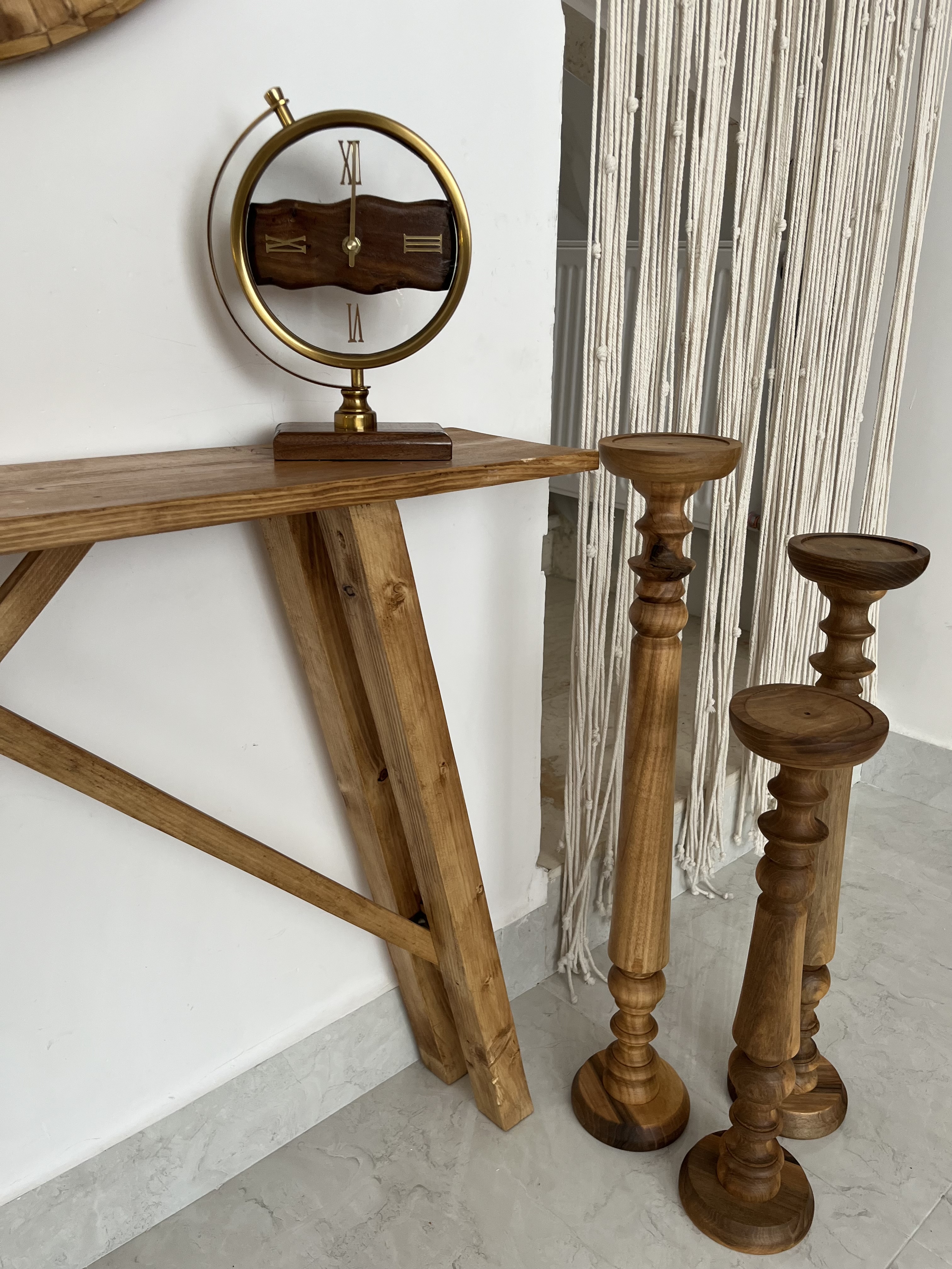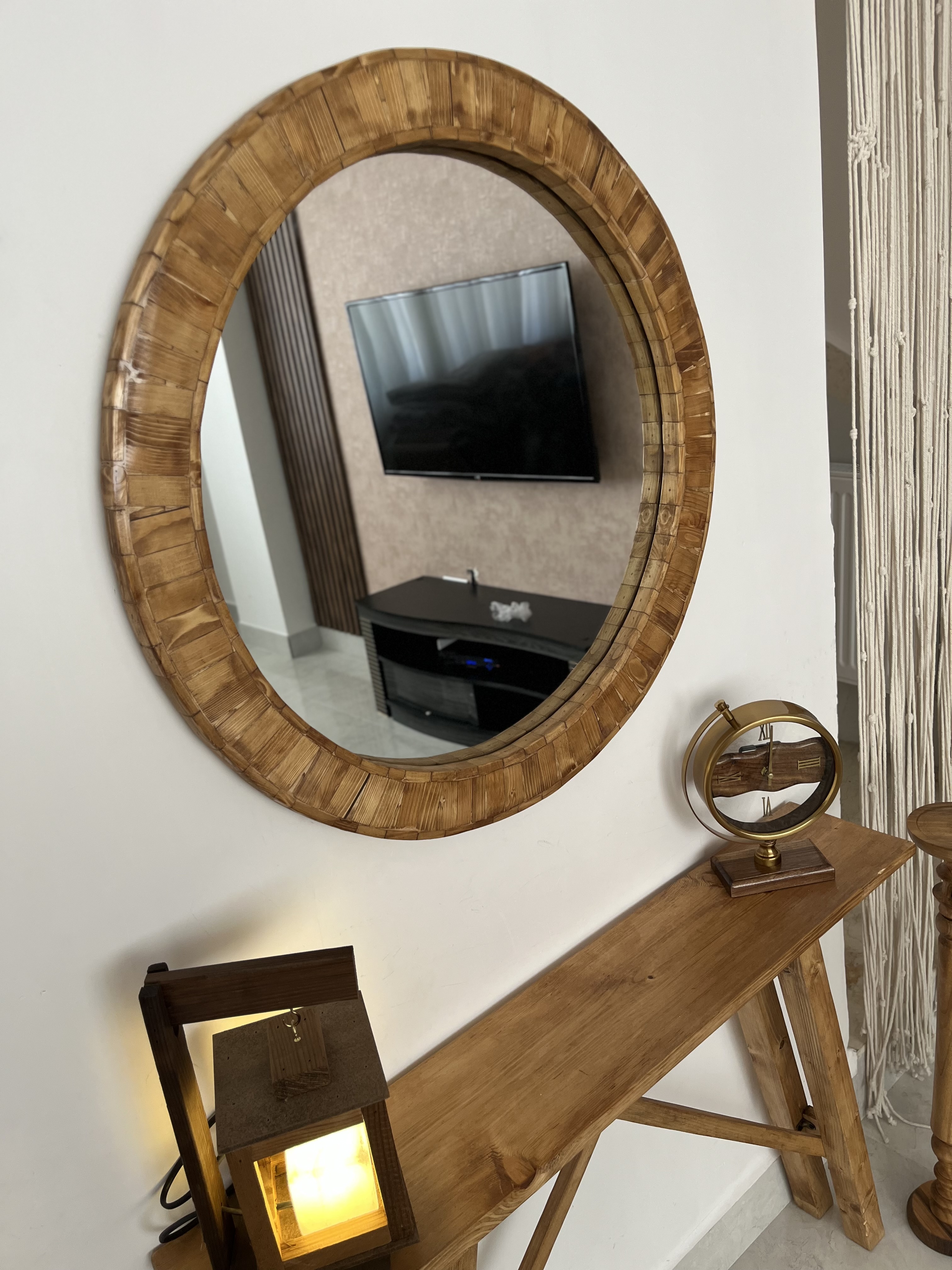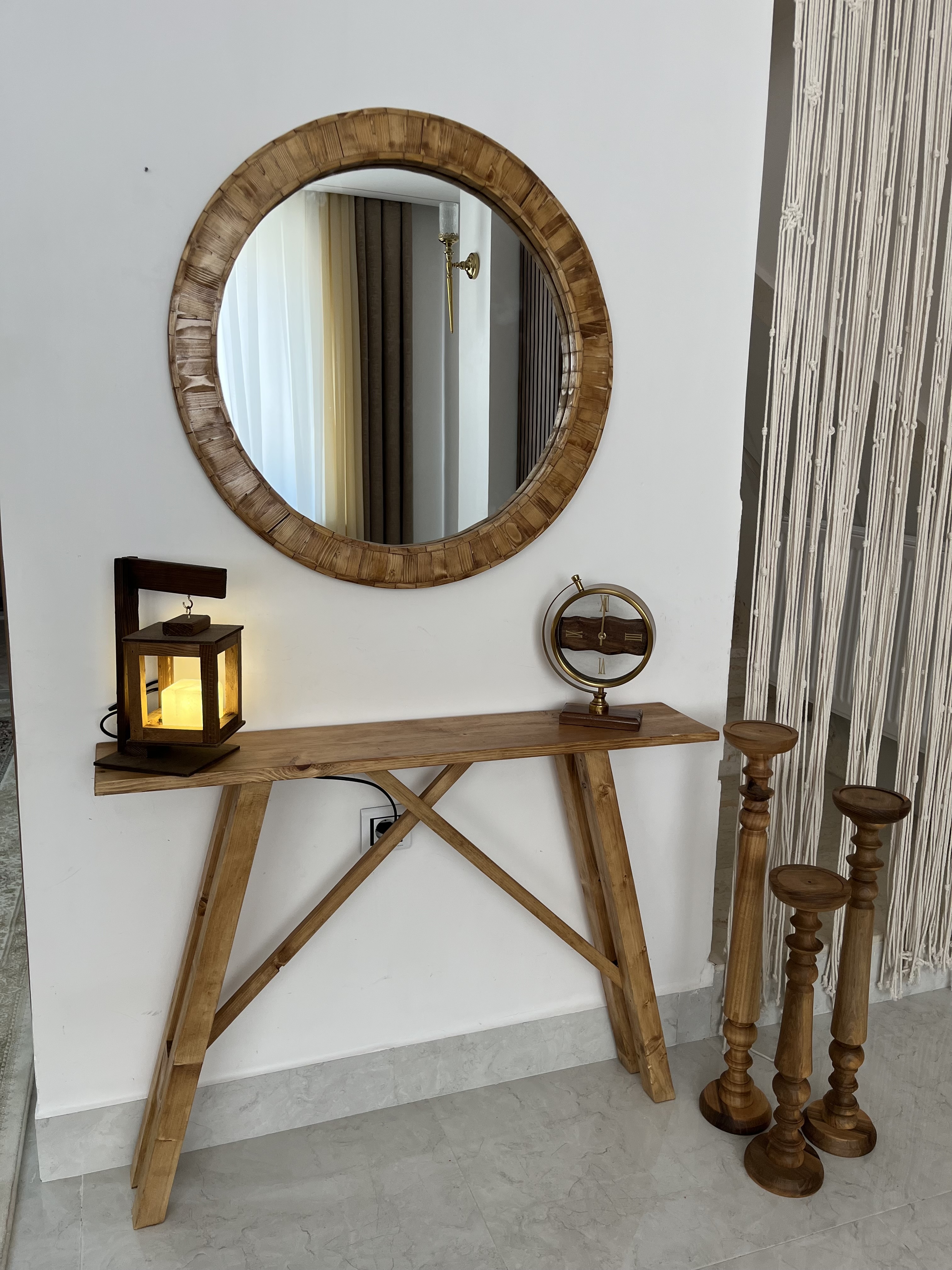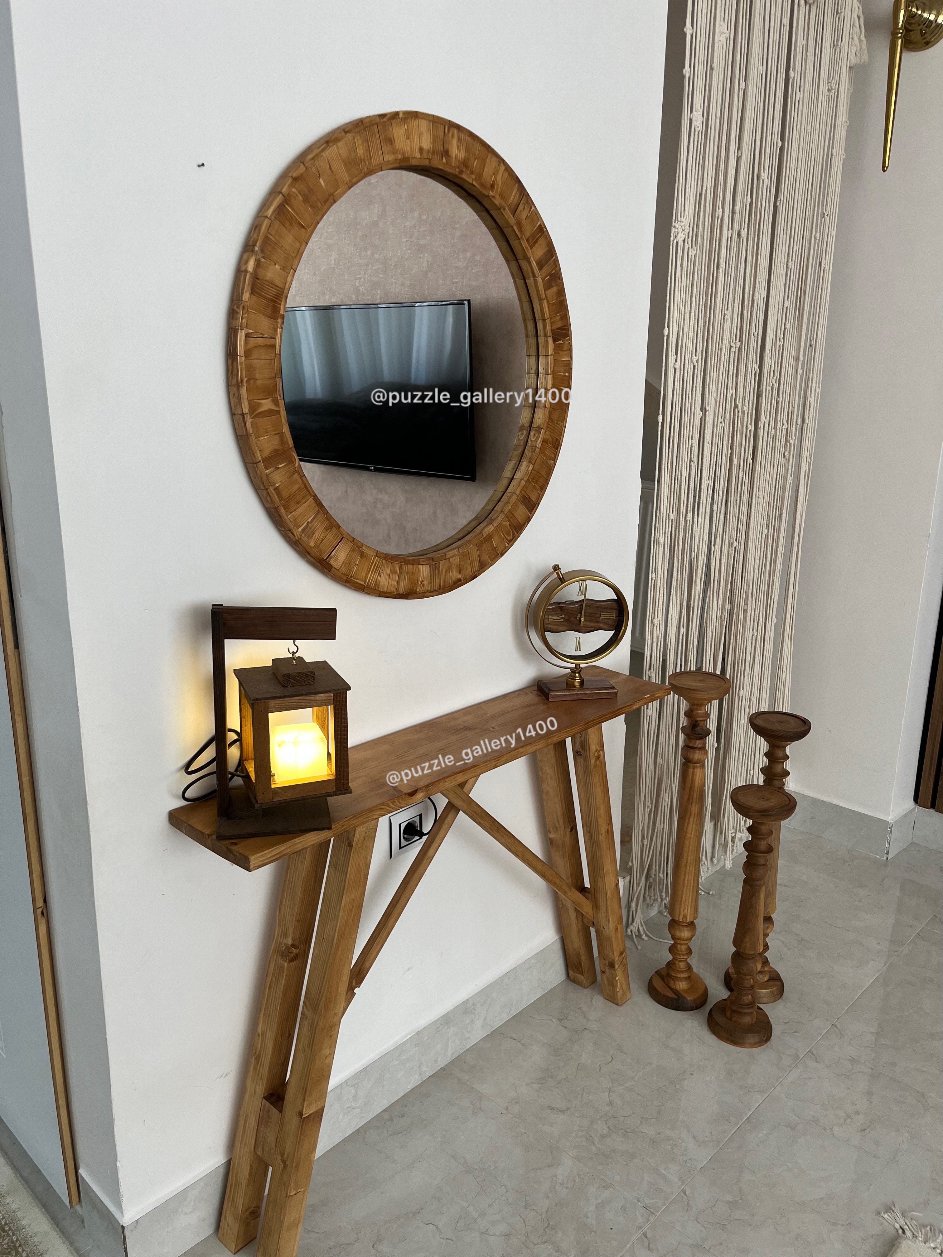 آینه و کنسول چوبی (قطر آینه ۷۰سانتی متر،طول میز ۱متر )قابل سفارش در اندازه دلخواه